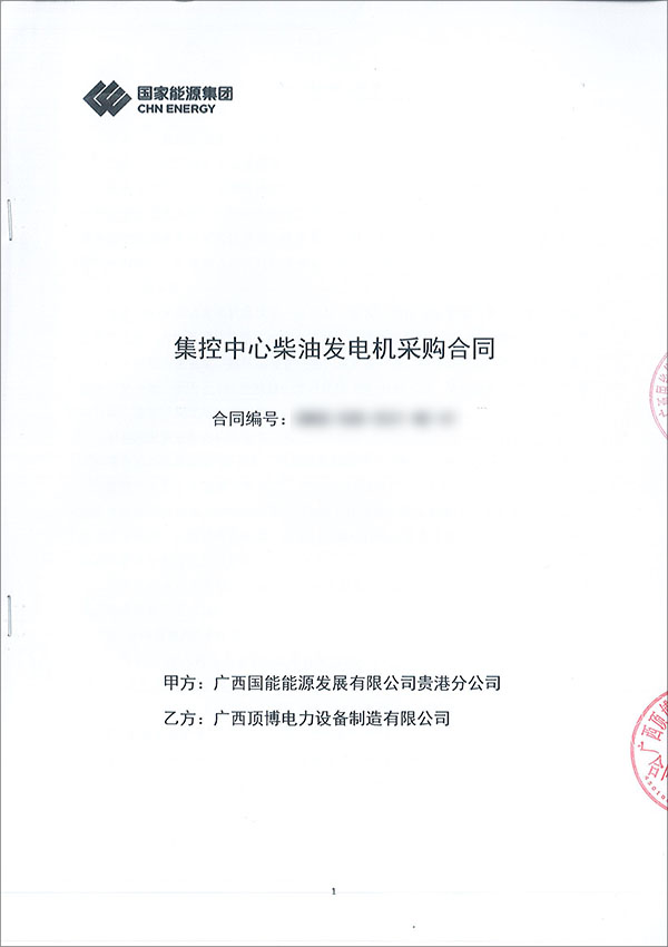 2021年6月7日,廣西國能能源發展有限公司貴港分公司接受我司為集控中心柴油發電機采購項目的報價,遵循平等、自愿、公平和誠實信用的原則,共同達成并簽訂集控中心柴油發電機采購合同,我司將按照合同約定,為貴公司提供全新300KW