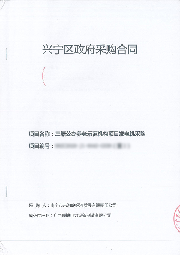 近日,廣西頂博電力設備制造有限公司與南寧市東溝嶺經濟發展有限責任公司根據2020年11月6日南寧興寧區政府采購項目的采購結果成功簽署了一臺