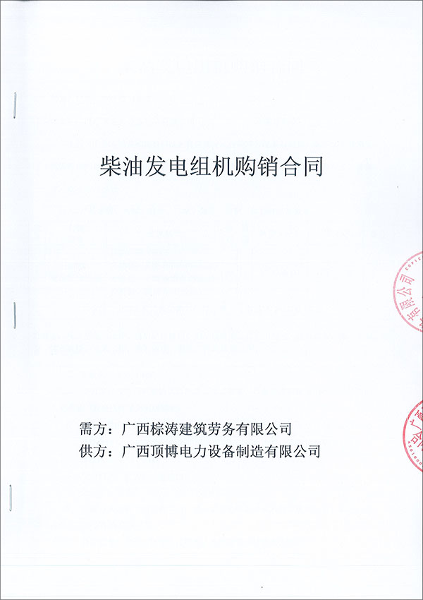 廣西棕濤建筑勞務有限公司成立于2011年03月16日,所屬廣西房地產/建筑行業,全心致力于建筑工程勞務分包、園林綠化、鐵路工程、隧道工程、橋梁工程、城市軌道交通工程、消防工程、土石方工程、防水工程、房屋建筑工程、市政工程等服務。用戶本次購買的柴油發電機組配置為玉柴發動機配上海斯坦福發電機,搭配頂博云管理系統,用戶可實現通過手機APP或電腦端程序遠程操控柴油發電機組,大大提高了用戶的工作效率,頂博電力承諾自機組安裝調試完成之日起,我司將對所供應的機組實行保修期為三包兩年或累計運行1500小時(以先到為期)的售后服務。