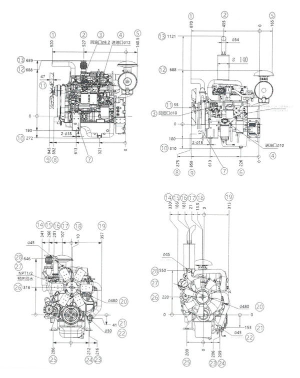 14 | 排氣口到曲軸中心的垂直距離 | 689 | 1121 |